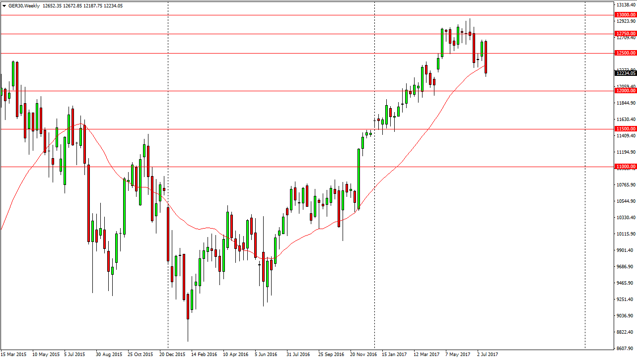 The German index fell significantly during the week, slicing through the €12,500 level. Not only that, we are testing a significant area of that appears