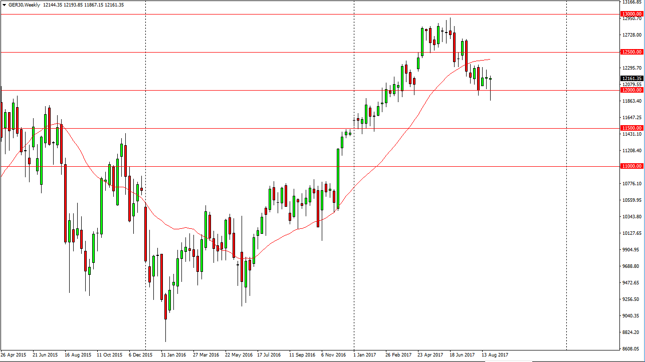 The German index fell initially during the week, breaking below the €12,000 level. However, we found more than enough support underneath to turn things