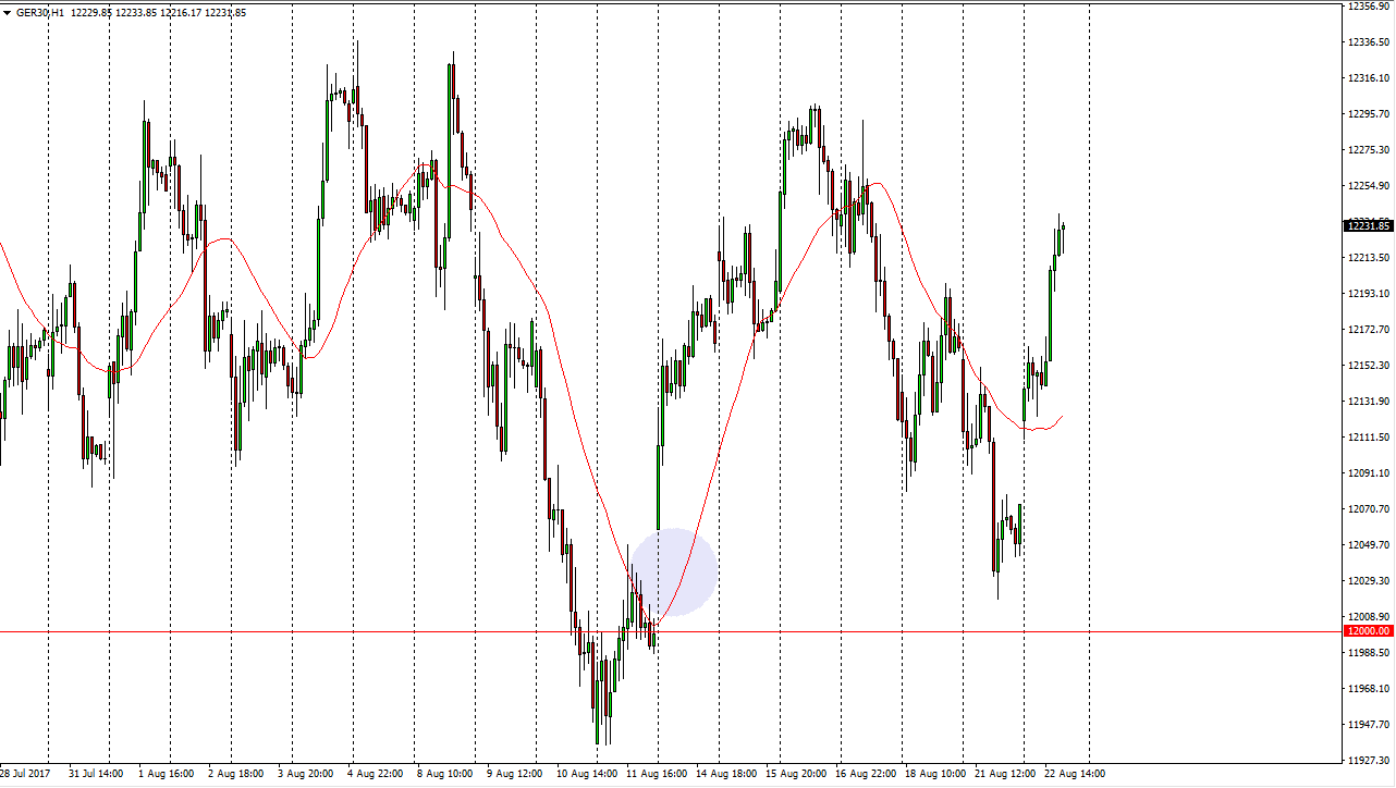 The German index gapped higher at the open on Tuesday, clearing the €12,100 level. By doing so, it brought in enough bullish momentum to reach much higher