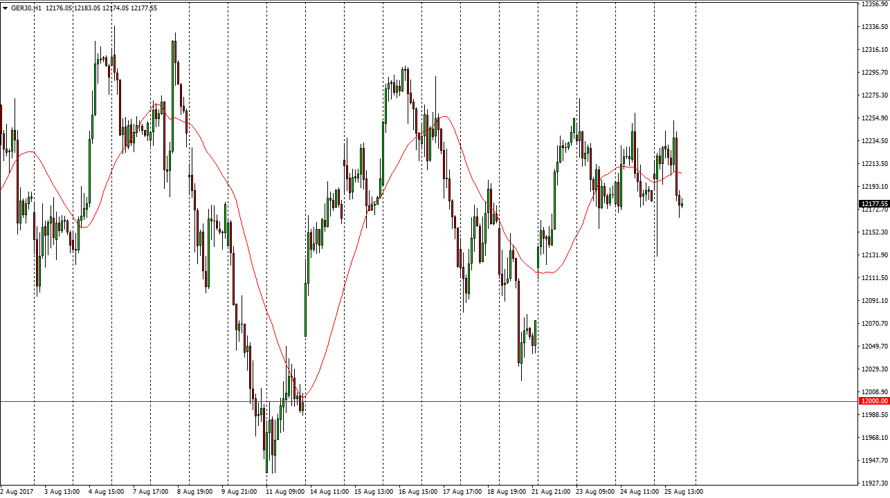 The German index went higher initially during the day on Friday, but then fell significantly as the world awaited the speech by Mario Draghi in Wyoming. The market looks likely to look to the ECB as whether they will accommodate stock markets, or if they are going to start tightening. Ultimately, I believe that the DAX does go higher though, and that being the case I am a buyer of dips. If we breakdown from here, there is a massive gap below at the €12,050 level. That is also support, so I feel it’s only matter of time before the buyers take over. It is not until we breakdown below the €12,000 level that I would consider selling.