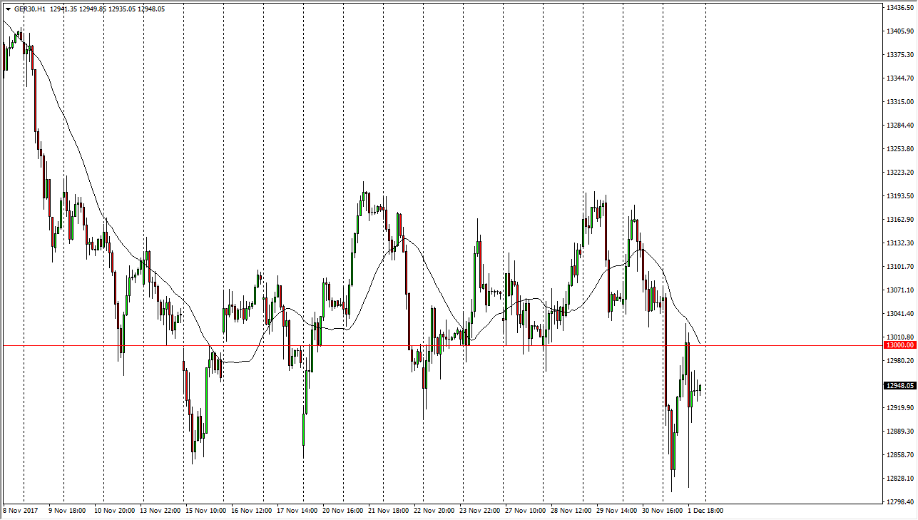 The German index fell during the trading session on Friday, reaching as low as €12,825, but we bounced rather violently towards the €13,000 level. If we can break above that level again, then I think the market goes to the €13,200 level region. A break above that move should send this market towards much higher levels, perhaps towards the €13,500 level, and then eventually the €15,000 level from a longer-term perspective. I do like the DAX in general, and I think that if we can get a fresh new high, then we can start buying again, and of course a nice buying opportunity on dips, offering an opportunity to build upon a core position.