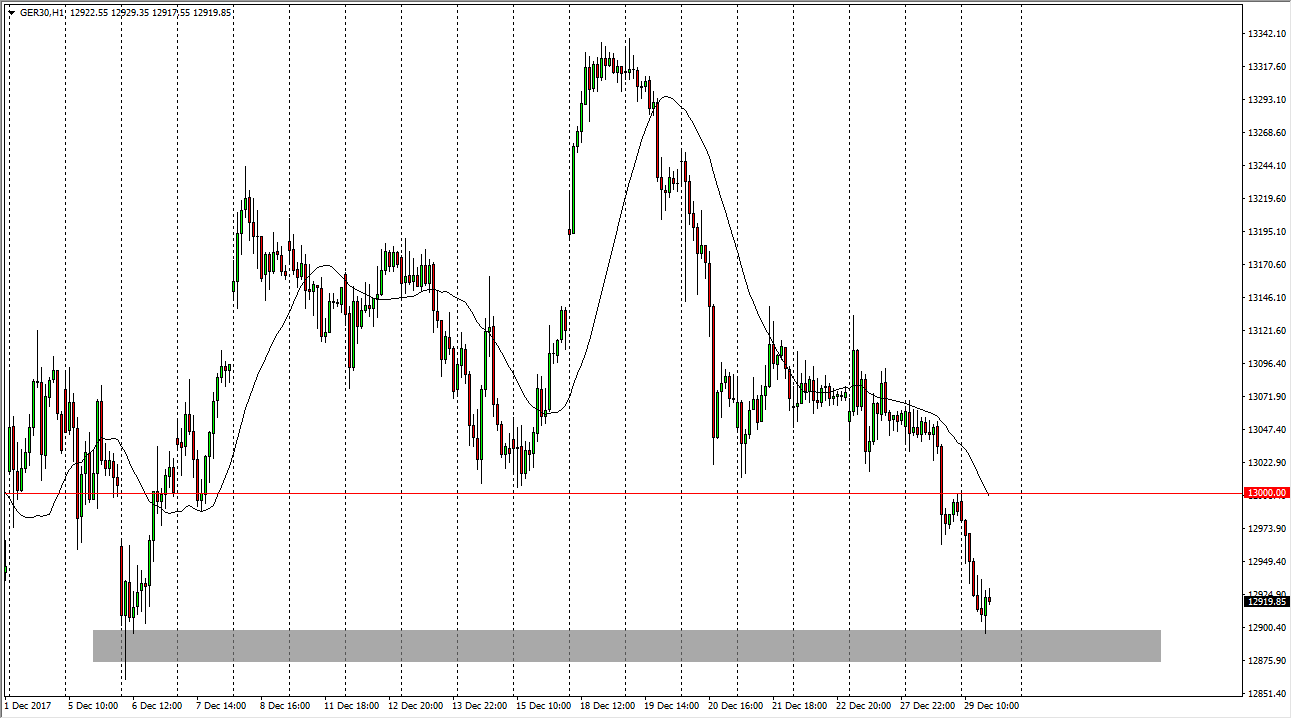 The German index has broken down during the trading session on Friday, as there is plenty of support just below. It was low-volume, so it will be interesting to see how the year starts out.