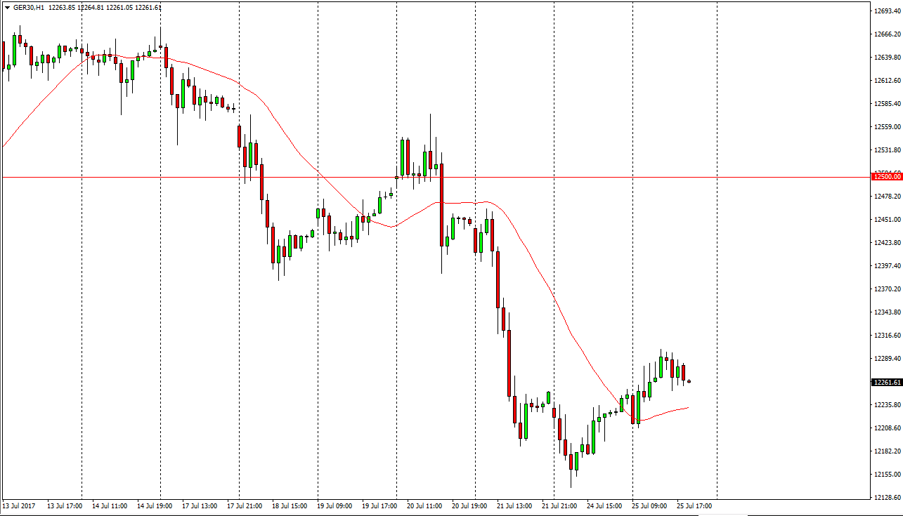 The German index rose slightly during the day on Tuesday, as we meander around the €12,250 level. The market isn’t necessarily showing signs of momentum,