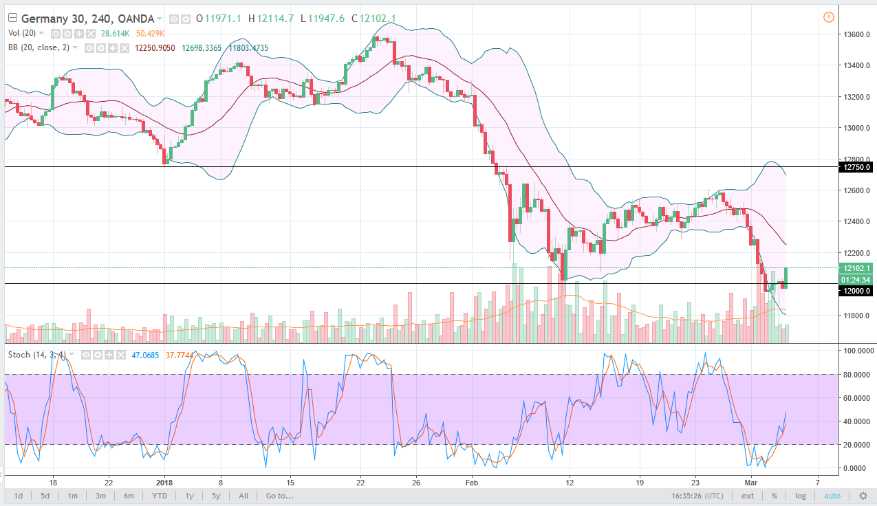 The German index rallied rather significantly during the trading session on Monday, after finding the €12,000 level to be supportive enough to push the market to the upside. This is a good sign, as we are starting to see buyers right where we need to keep the uptrend alive.