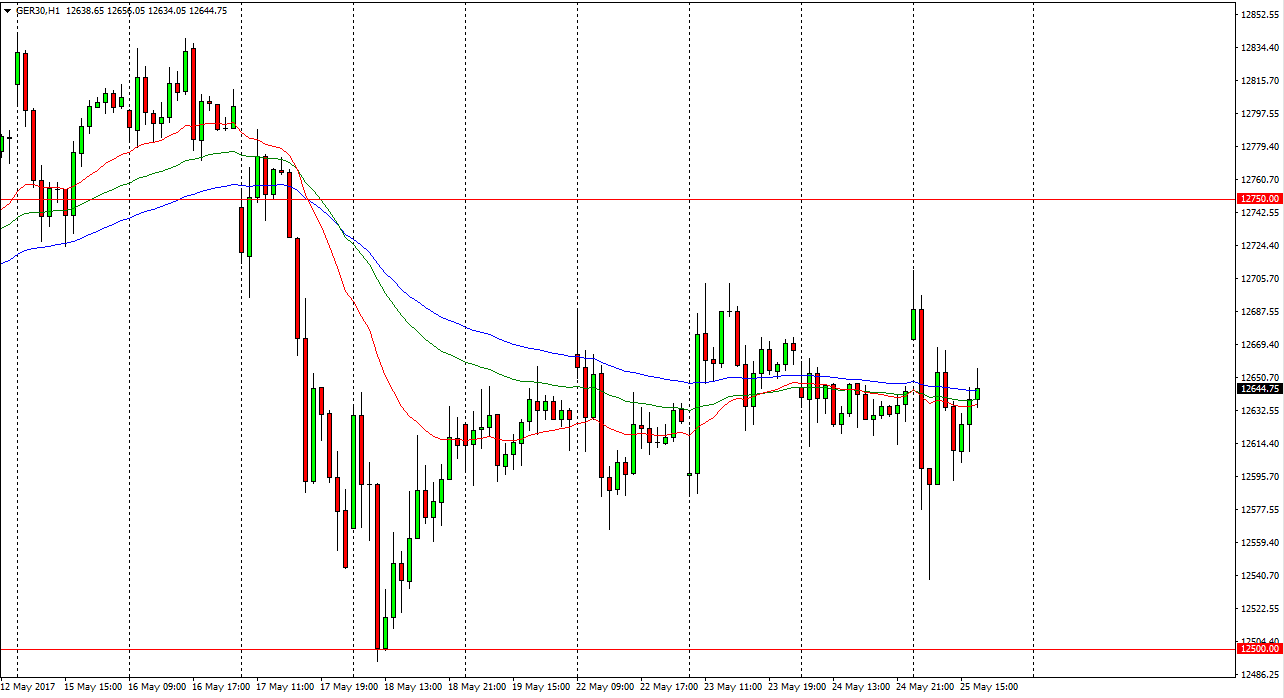 The German index initially gapped higher at the open on Thursday, reached towards the €12,700 level, and then turned around to roll over and reach towards the €12,550 level. We bounced from there, and then reached towards opening somewhat unchanged. The DAX has been relatively flat over the last several sessions, so this seems as if it is simply an extension of what we have seen over the last week or so. I believe that the €12,500 level underneath continues to offer support, so it’s not until we break down below there that I would be concerned about the recent uptrend. Yes, we did sell off drastically last week, but that had more to do with noise coming out of Washington DC than anything else. In the long run, that should not have much of an effect on what happens in Germany.