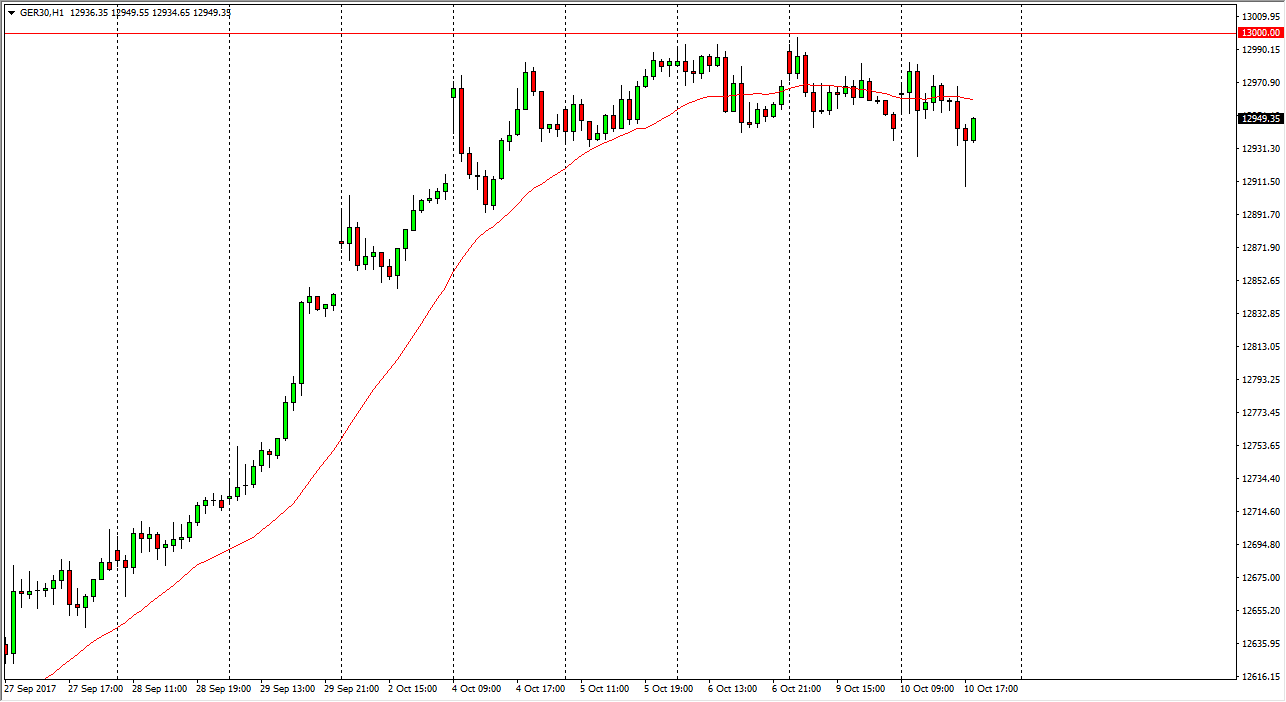 The German index pulled back a bit during the day on Tuesday, as we found support near the €12,900 level. That’s an area where I think we should see