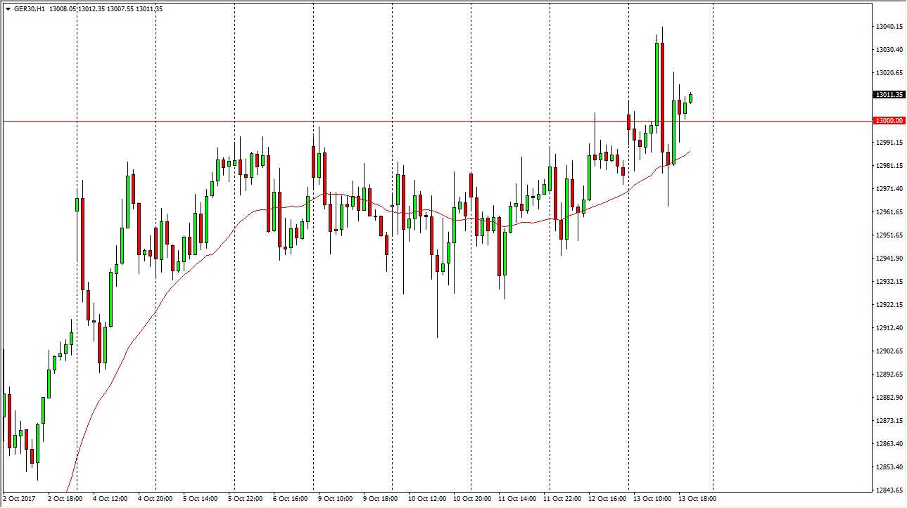 The German index gapped higher at the open on Friday, reaching towards the €13,000 level. We pulled back from there, and then rallied yet again only to