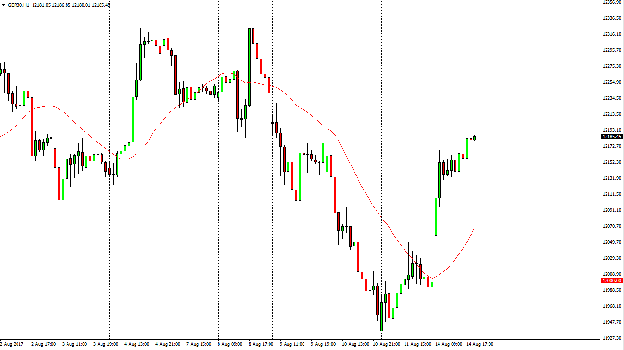 The German index gapped at the open on Monday to the upside, as the €12,000 level has offered significant support. Because of this, it looks like we are