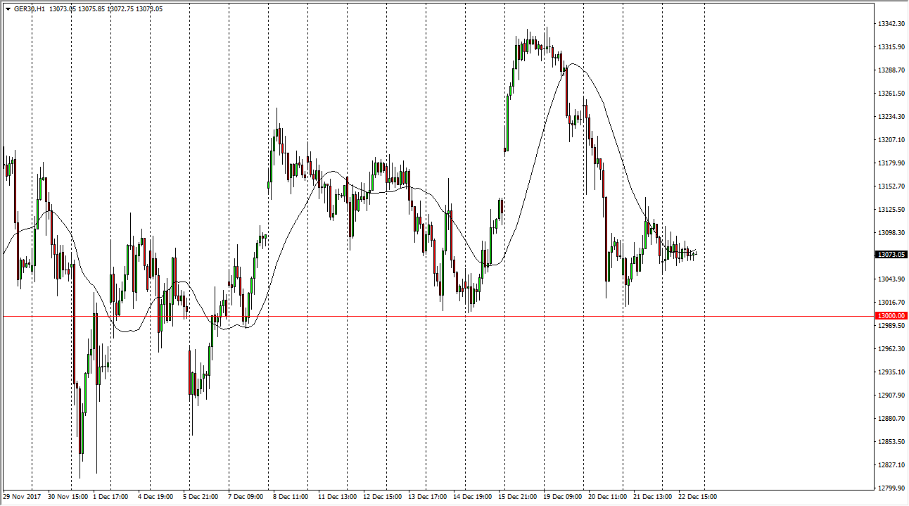 The German index did almost nothing during the trading session on Friday, as traders would have stayed away due to the upcoming holiday. Because of that, I believe that the most important thing we can do is pay attention to the larger support level just below.