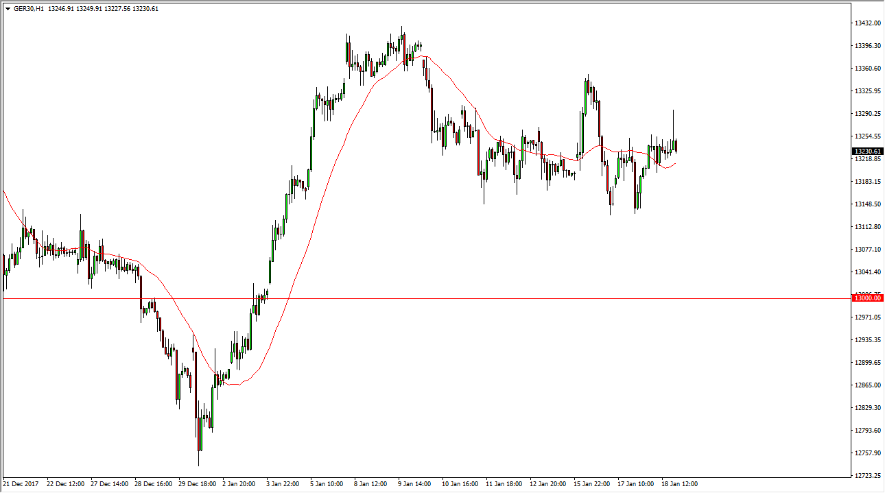 The German index went sideways overall, as we continue to see the market go back and forth. I think that the DAX will of course be bullish longer term, but currently I think we are trying to build up the necessary momentum to continue going higher. The €13,000 level underneath is essentially what I look at as the “floor” in the market, and it is not until we break down below there significantly that I would consider selling. Remember, the DAX is one of the first places that Europeans put money to work, and more importantly: foreign investors put money to work in Europe.