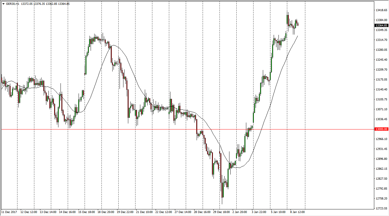 The German index gapped higher at the open on Monday, as we came back from the weekend break. The market has been very bullish lately, so it makes sense that we could continue to see buyers jumping in, but these pullbacks that happen, such as the one during the session on Monday, offer value that I think attract a lot of attention. I suspect it will be noisy, but at the end of the day it’s obvious that the DAX has been one of the favored indices in the European Union, and by extension the world. I think that given enough time, we will go looking towards the €15,000 level, but that obviously is a very long-term target.