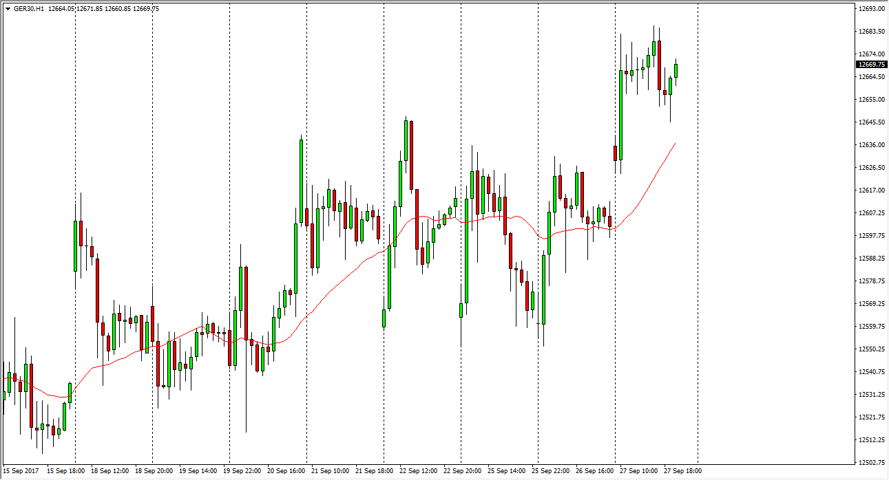 The German index gapped higher at the open on Wednesday, and then shot towards the €12,700 level. The market pulled back a bit from there, reaching