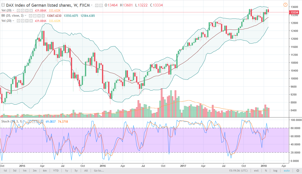 The German index had a negative week, but quite frankly we have gotten a bit overstretched, and although we made a fresh, new high, it made sense that we pulled back as the market may need to digest some of the gains.
