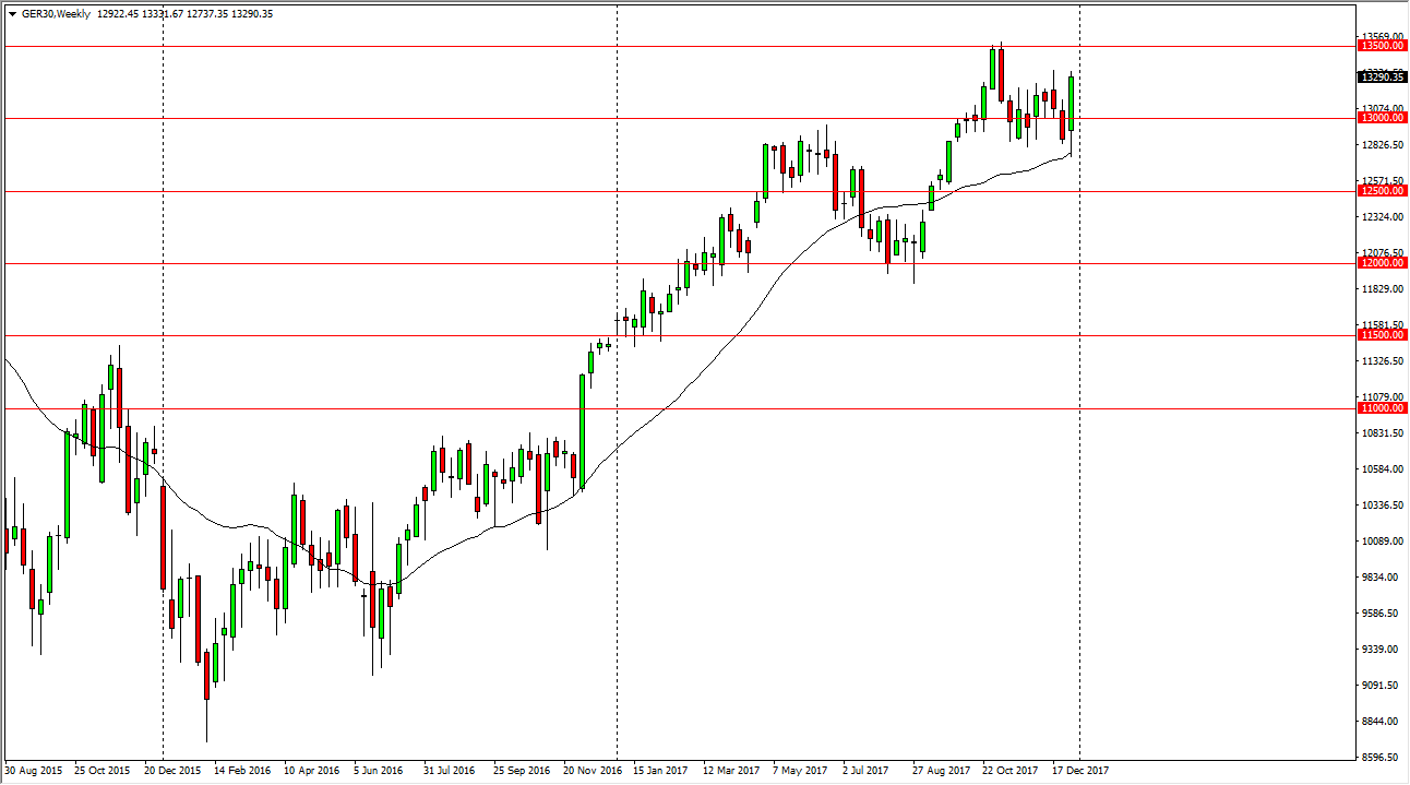 The German index initially fell during the week, but found enough support at the €12,750 level to turn around and explode to the upside. We are closing the week towards the top of the range, which of course is always a very bullish sign.