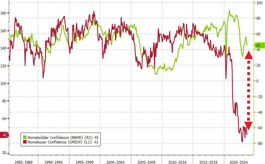 Likewise, while homebuilder confidence has come under pressure from higher long-term Treasury yields, there is still plenty of room to fall.