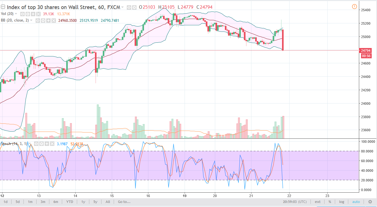 The US stock markets were calm during most of the trading session on Wednesday, but after the FOMC minutes came out, the market started selling off. Because of this, we may see a bit of value in turn the market place.