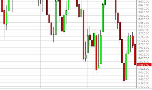 The Dow Jones 30 as you can see fell hard during the course of the session on Monday, as we continue to struggle overall. Ultimately though, we do believe that there is a bit of support just below, even though the markets are not showing any real signs of turning back around at the moment. On a supportive candle, we would be a buyer, but quite frankly we are close enough to significant support that we would not be sellers at this point in time. We still believe that a break above the 17,800 is what is needed for a longer-term buy-and-hold scenario.