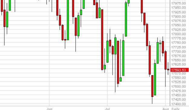 The Dow Jones 30 as you can see went back and forth during the course of the session on Tuesday, as we await jobs numbers this week. We have the ADP Nonfarm Payroll numbers coming out today, but ultimately it’s the government numbers that we will be paying the most attention to. We are getting close to pre-significant support near the 17,500 level though, so we are looking for supportive candles in order to start buying. We have no interest in selling this market at the moment unless of course the jobs numbers are absolutely horrific.