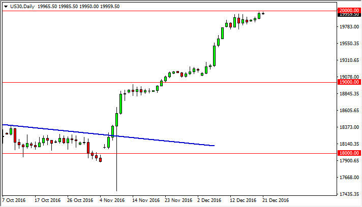 The Dow Jones 30 did almost nothing on Wednesday, as the 20,000 psychological resistance continues to be stringent. I think that a break above there of course sends this market much higher, and I also believe that it will happen sooner rather than later. However, short-term pullbacks may continue to be the way going forward, as the markets will have very little in the way of liquidity due to the holidays coming up this weekend. I have no interest at this point in shorting the market as it looks so bullish in general.