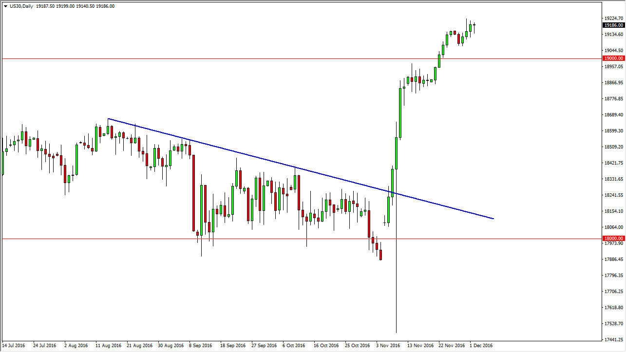 The Dow Jones 30 initially fell on Friday but turned around to form a supportive looking candle. I think that the 19,000 level below there is even more