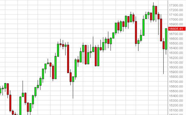 The Dow Jones 30 broke higher during the course of the week, clearing the top of a hammer that had formed on the previous week. Because of this, the markets look as if they are ready to go much higher, and most certainly the buyers are in control yet again that being the case, we feel that this market will have positive momentum going forward and as a result we are buyers. We have no way of selling this market as it obviously has a massive amount of support just below.