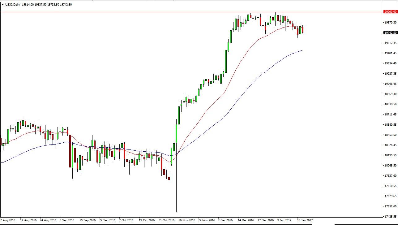 The Dow Jones 30 fell significantly on Monday, but remains within the previous trading range that we have been in. If we can break above the top of the range for the session on Monday, I feel that the market within reach towards the 20,000 handle yet again. This is an area that has massive resistance, so it makes sense that we continue to pull back to try to build up the necessary momentum to go long again. We did get a bit overextended initially, so it makes sense that we have a cooling-off period