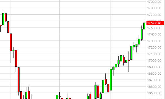 The Dow Jones 30 rose during the course of the session on Friday, touching the 17,600 level. As we continue to grind higher, it’s obvious that the Federal Reserve suggesting that interest rate hikes are going to be fewer than anticipated will continue to help the stock markets. We are currently heading towards the 18,000 level, so pullbacks at this point in time should be buying opportunities going forward, as the Dow Jones should continue to be a beneficiary of loose monetary policy coming out of the United States. We have no interest in selling.