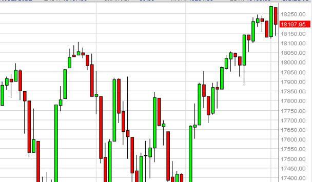 The Dow Jones 30 as you can see fell during most of the session, but bounced off of the 18,150 level to turn things back around and form a little bit of support. With that, we feel that the market continues to consolidate overall, but then should head to the 20,000 handle which is our longer-term target. We have no interest in selling this market, because it has recently broken out. We believe that the Dow Jones 30 will continue to be a strong performer over the longer term, thereby making this an attractive “buy-and-hold” type of situation.