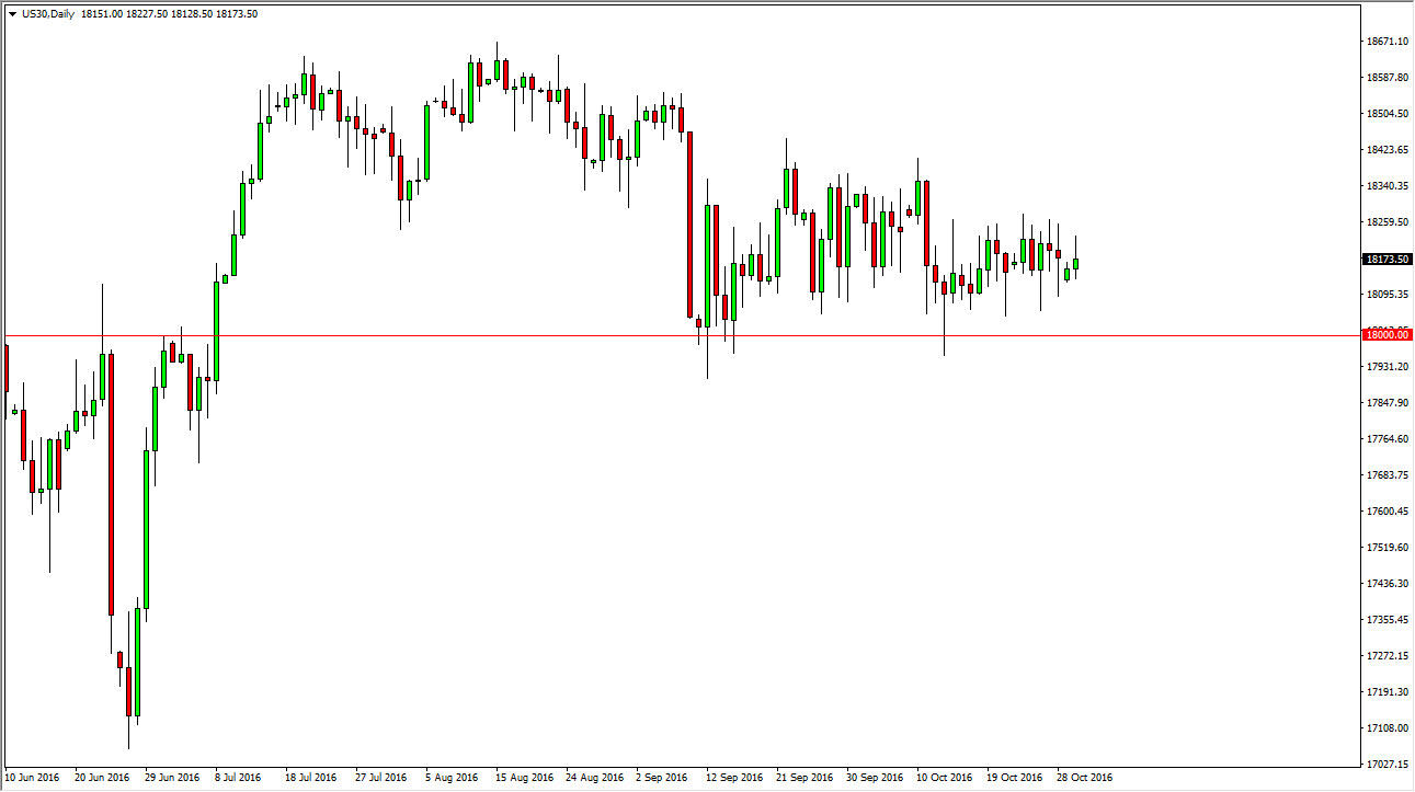 The Dow Jones 30 gapped lower at the open on Monday, but turned back around to show signs of support. By doing so, it looks as if the market isn’t ready to go very far now. I think that the 18,000 level below continues to be the “floor” in this market, and therefore I’m simply waiting for some type of supportive candle that we can start going higher. The 18,400 level above is very resistive, but I do think in the end that we will break above there and reach to much higher levels.