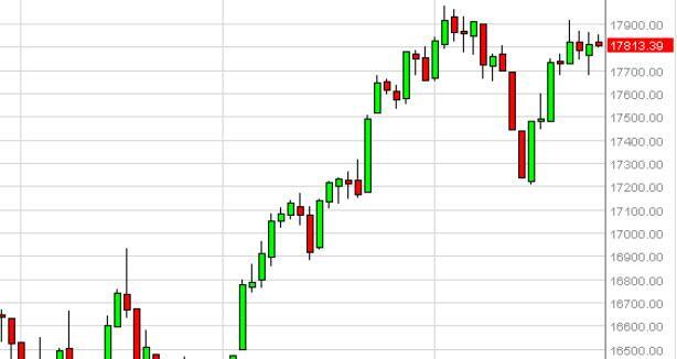 The Dow Jones Industrial Average of course did move during the course of the day on Thursday as it was Thanksgiving Day in the United States. Given enough time though, we feel that this market should continue to break out to the upside and clear the 18,000 resistance barrier. Any pullback at this point in time should be a potential buying opportunity in what is an obvious uptrend in this particular index. American indices should continue to go higher over the longer term, and as a result we have no interest in shorting this market.