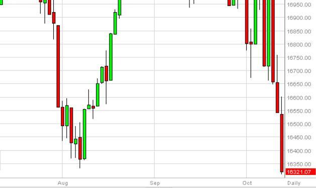 The Dow Jones 30 broke to a fresh new low during the session on Monday, clearing the 16,350 level to show significant bearishness in this marketplace.