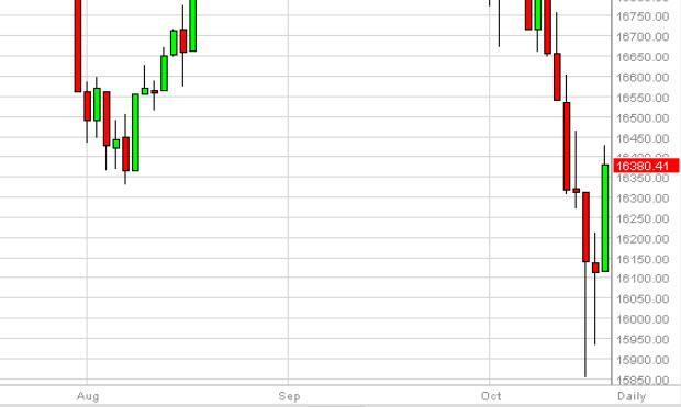 The Dow Jones 30 as you can see rose significantly during the session on Friday, breaking the top of the hammer from the Thursday session, and breaking above the 16,350 level as well. Because of this, we are bullish of this market again and the fact that we have formed a hammer on the weekly chart certainly doesn’t hurt the situation either. With that, we anticipate that this market will continue to go higher, and on a break of the top of the range for the session on Friday, we are buyers.