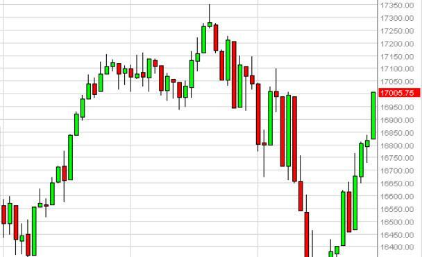 The Dow Jones 30 rose strongly during the session on Tuesday, getting over a percent. That being said, we crashed into the 17,000 level, which of course