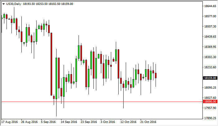 The Dow Jones 30 went back and forth during the course of the session on Friday, eventually forming a relatively neutral candle. We continue to see quite a bit of support just below and near the 18,000 handle. That being the case, the market looks like it will eventually bounce but short-term pullbacks are going to be used in order to go long. Given enough time, we should then reach towards the 18,400 level above. I think that we will continue to see quite a bit of choppiness going forward, but I think there’s more of an upward bias.