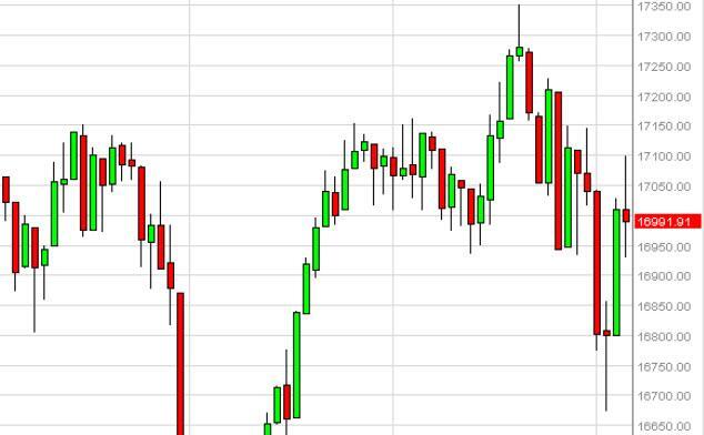 The Dow Jones 30 tried to go higher during the course of the day on Monday, but found the 17,100 level to be a bit too resistive. Ultimately, the resistive candle ended up looking a lot like a shooting star, so we feel that this market may drift a little bit to the downside. We do believe that the market has plenty of support below though, and as a result we feel that this market can only be bought on supportive candles below and have no interest whatsoever in shorting at this point in time.
