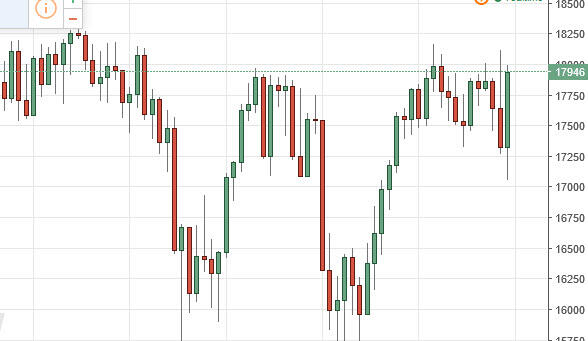 The Dow Jones 30 initially fell during the course of the week but found enough support at the 17,000 region to turn things around and explode to the