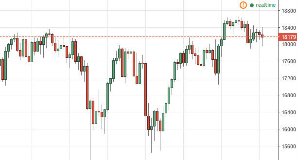 The Dow Jones 30 went back and forth during the course of the week, forming a fairly neutral candle. It appears that the 18,000 level below should be