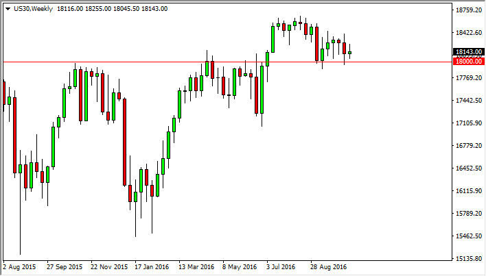 The Dow Jones 30 went back and forth during the course of the week in a rather tight trading. With this being the case, looks as if the 18,000 level will