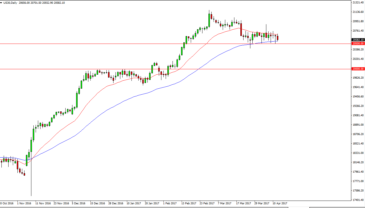 The Dow Jones 30, like most indices around the world, fell during the Wednesday trading session. However, we still sit above the vitally important 20,500 support level, so I think this is more of the same, simply grinding sideways. With that in mind, short-term back and forth type of trading is probably going to happen next.