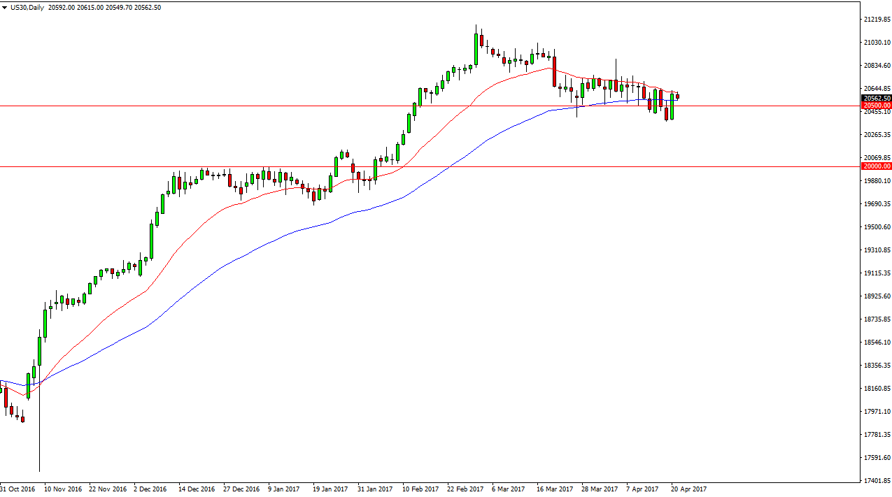 Dow Jones 30 The Dow Jones 30 fell slightly on Friday, but quite frankly it was a very quiet session. When I look at this chart, I recognize that we have