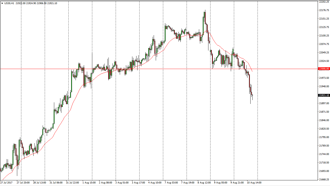 Dow Jones 30 The Dow Jones 30 broke down during the day on Thursday, slicing below the 22,000 level. By doing so, it shows a massive amount of bearish