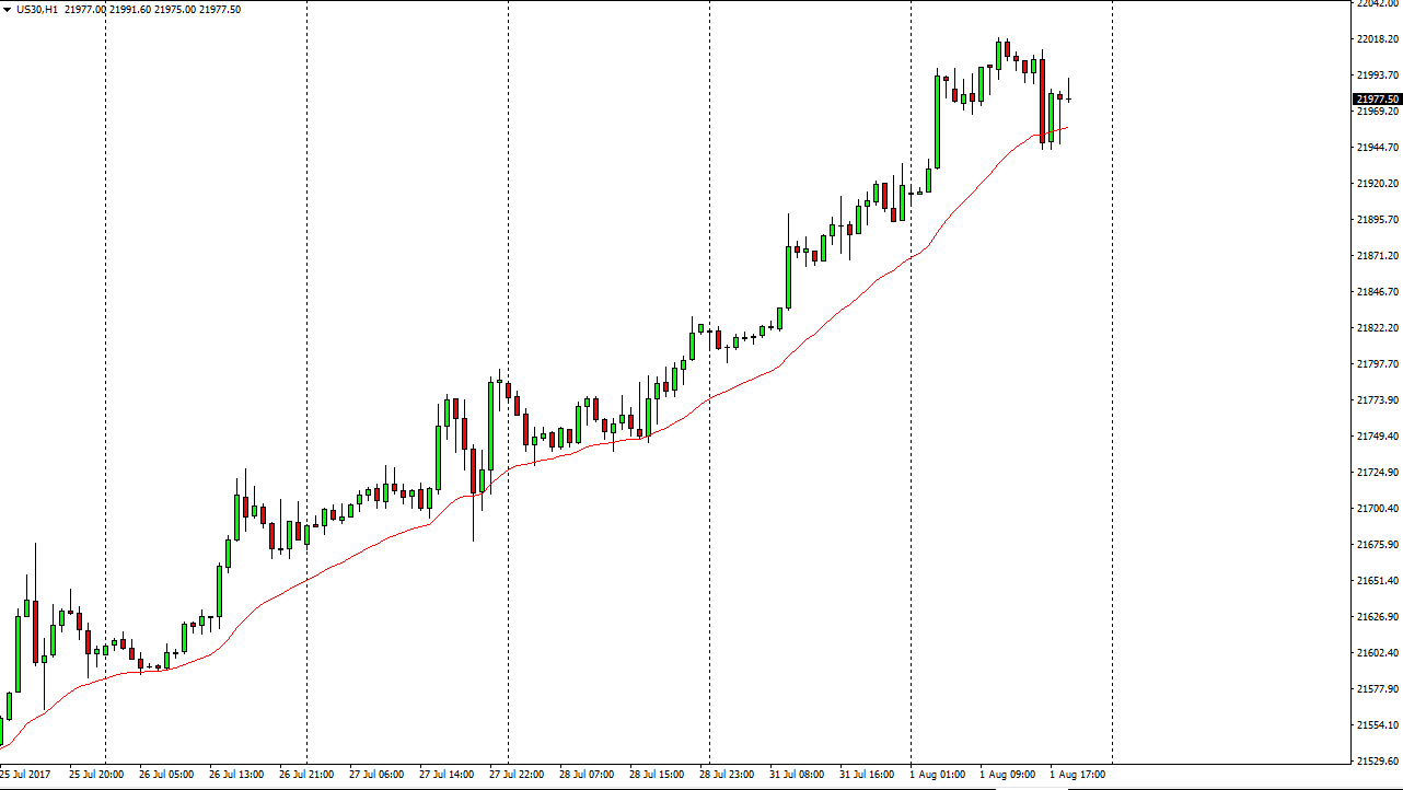 Dow Jones 30 The Dow Jones 30 rally during the day on Tuesday, reaching towards the 22,000 level the pulling back as the area offered a bit of