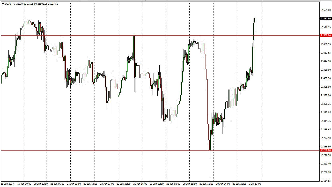The Dow Jones 30 of course will be closed, at least the underlying index will be. Ultimately, I like the idea of the 21,500-level offering support that we can continue to go higher. I think that the buyers will come back into the markets on Wednesday, but pullback should offer buying opportunities. I have no interest in shorting this market, but obviously won’t be doing anything today.