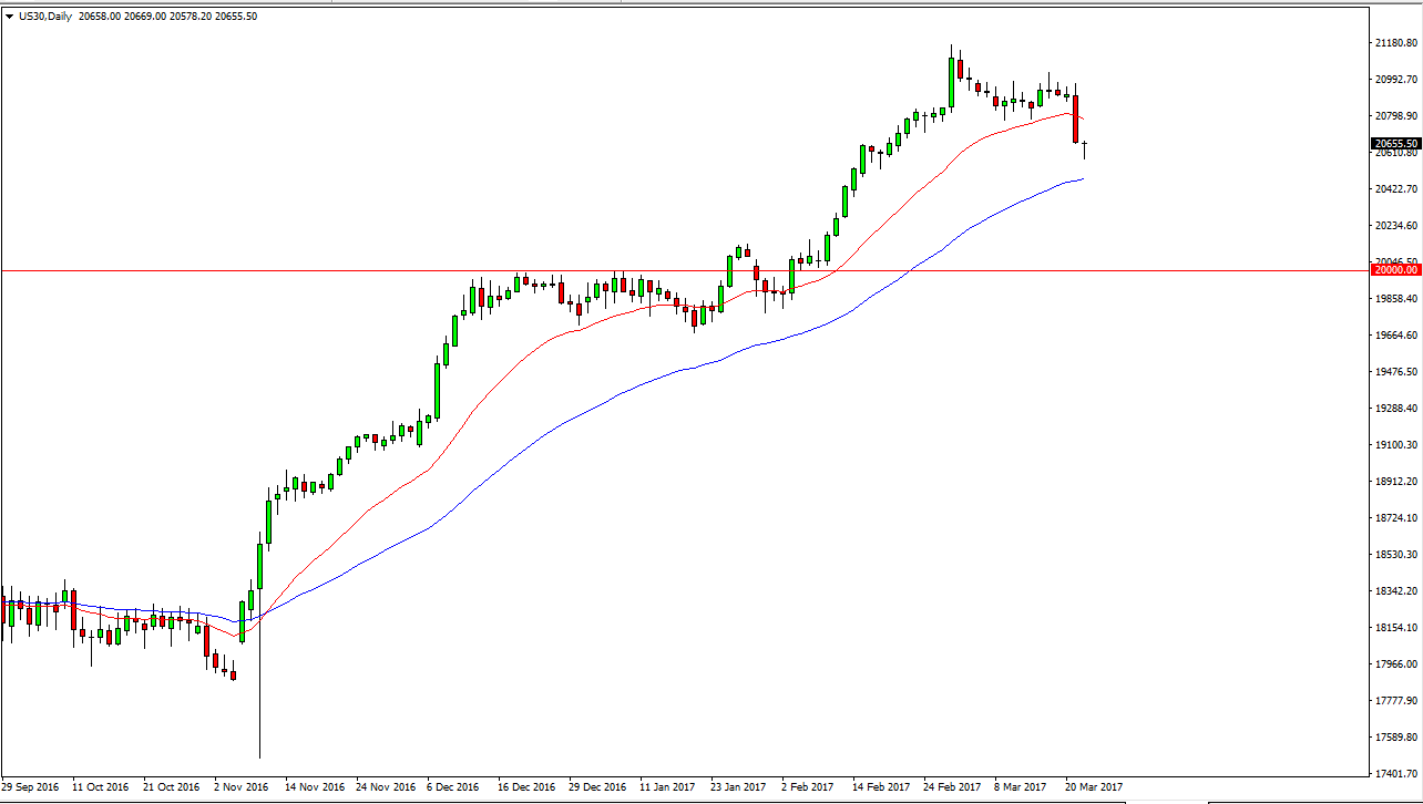 The Dow Jones 30 initially fell during the session on Wednesday, but found enough of bullish pressure underneath to turn things around and form a supportive looking candle. If we can break above the top of the candle for the day, it’s likely that we will go looking for the 21,000 handle. We have been in a longer-term uptrend for some time, so this pullback should offer value for plenty of traders out there.