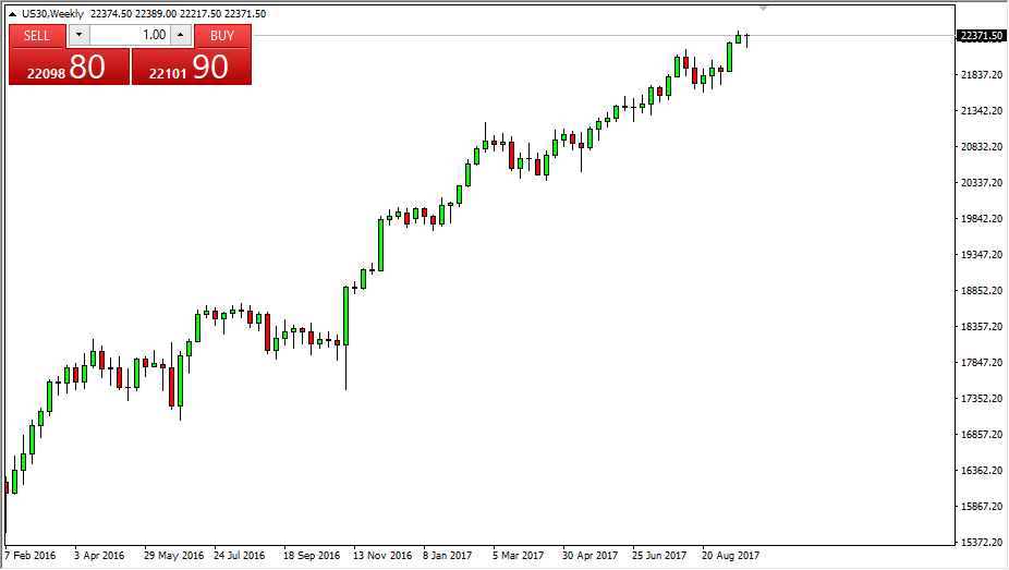 Dow Jones 30 The Dow Jones 30 initially fell during the week to turn around and form a hammer. This is a very bullish sign of the top of a very bullish