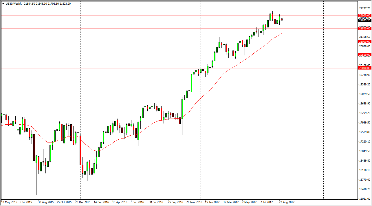 Dow Jones 30 The Dow Jones 30 gapped lower at the open on Monday, and then spent the rest of the week going back and forth. The 22,000-level offered