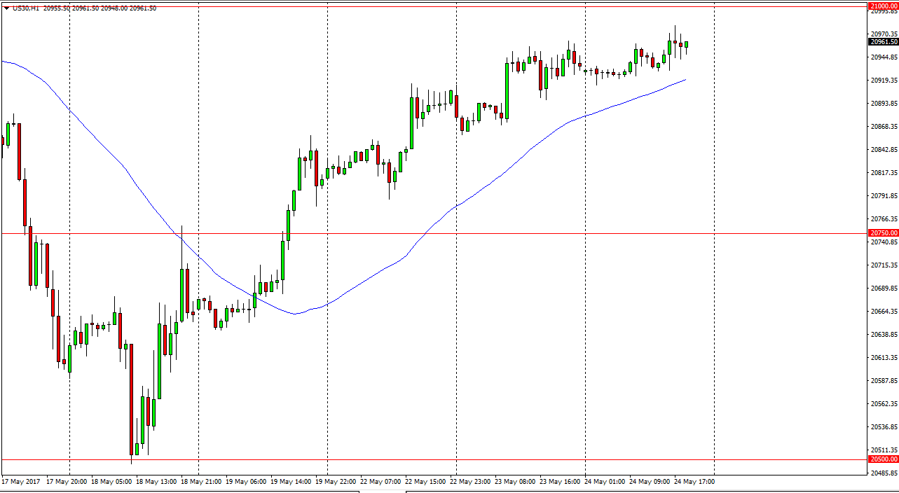 The Dow Jones 30 initially dipped just a little bit lower at the open on Wednesday, but we continue to see sideways action as the markets are consolidating after a nice move higher. If we can break above the 21,000 level, I feel that the market will continue to go higher. I also believe that pullbacks offer buying opportunities, and will be seen as value. Ultimately, I think that the market will attract money going forward as the US stock markets have lead the way for the rest of the world. A break above the 21,000 level should send this market to the 21,500 level next. I have no interest in selling, and believe that value hunters are out there waiting to pick up the pieces every time we fall.
