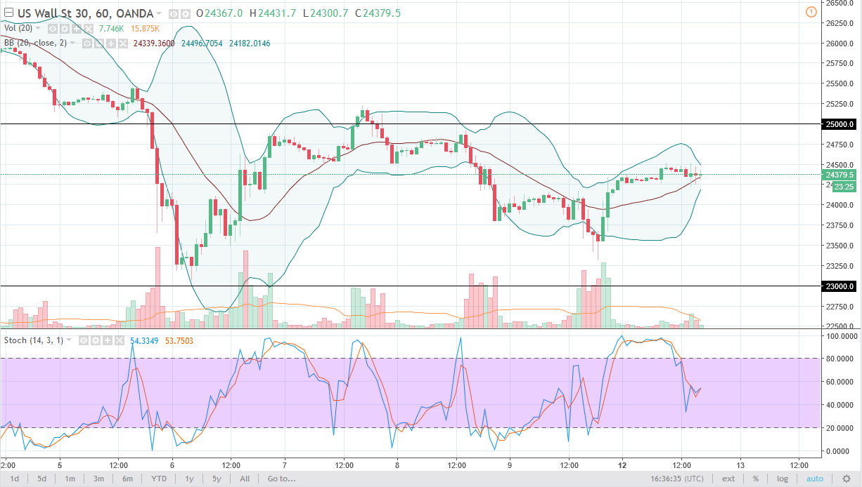 The Dow Jones 30 initially rally during the day on Monday, and then went sideways for several hours. It looks as if the value hunters are back out in full force, and it’s likely that we are going to go looking towards the 25,000 level once we clear the 24,500 level. If we can break above the 25,000 level, the market is free to go much higher. I like the idea of buying dips, but I would do so in small increments, giving yourself some wiggle room as the recent selloff will of course made a lot of traders very nervous. However, as they say – “buy when there is blood in the streets.”