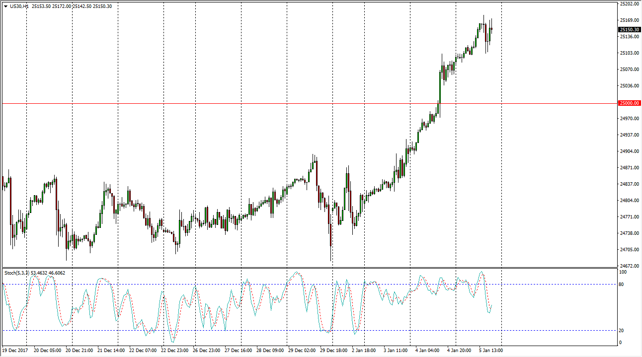 The Dow Jones 30 rallied during the day on Friday, pulled back a bit after the disappointing jobs number came out, but then rallied again to test the highs. We are clearly well above the 25,000 level now, and ready to go much higher. In fact, we came close to the 25,200 level above, so I think that it shows just how bullish the markets have become. I think that the 25,000 level should offer a bit of a “floor” in the short term, and perhaps even the long-term. Economic numbers in the United States continues to impress, save the disappointing jobs number during the day on Friday, so I think that buyers are willing to get involved, based upon the tax bill being passed.