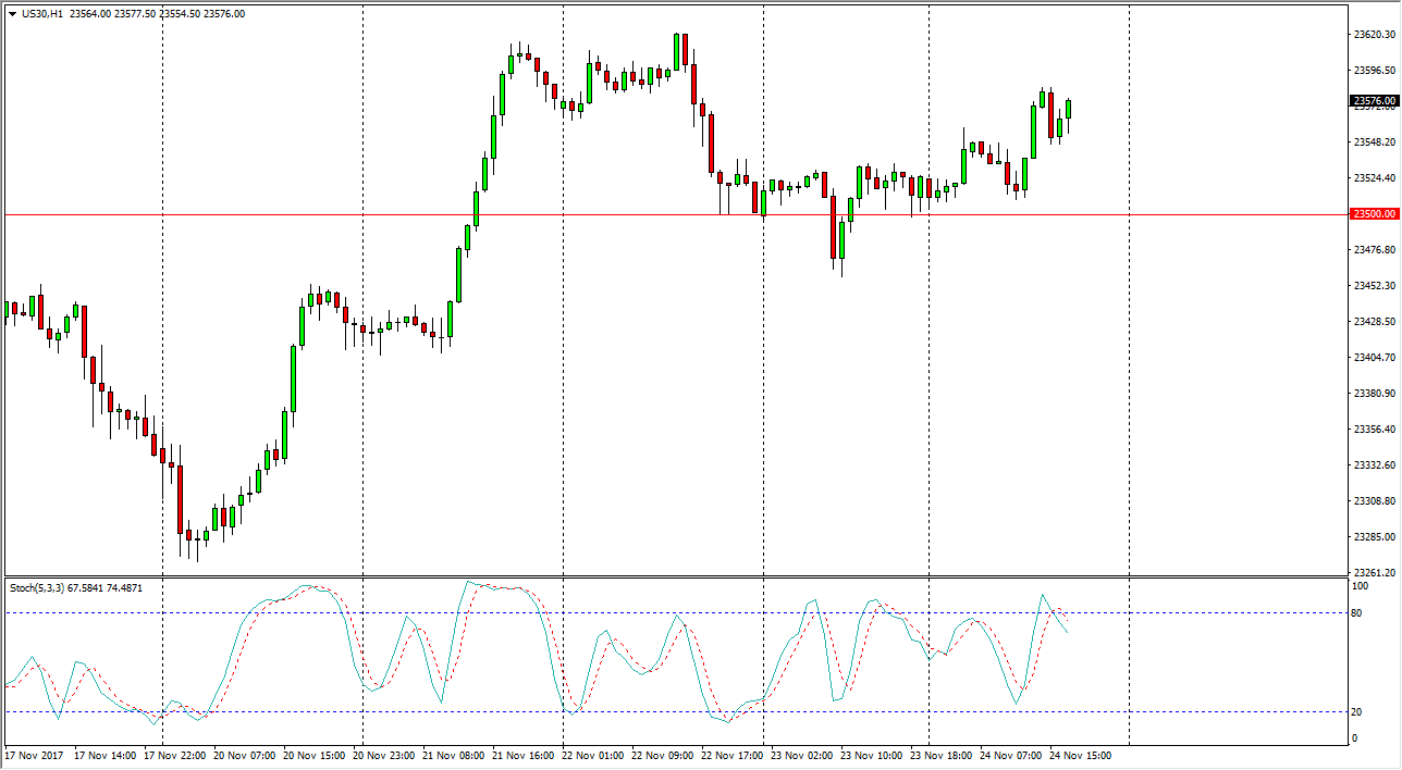 The Dow Jones 30 initially went sideways during the trading session on Friday, popping just a bit, pulling back again, and then finding enough support at the 23,500 level to rally significantly. Because of this, it’s likely that the market will continue to find buyers underneath, and I think that the short-term pullbacks are going to continue to be picked up by algorithmic traders as well, as a “buy every dip” mentality has taken over Wall Street. The 23,500 level is very important, and if we break down below there I think we could drop another 250 points rather quickly. Overall, I think that we will eventually reach towards the 24,000 handle above, which of course has a certain amount of psychological importance as well. The Dow Jones 30 continues to plow along to the upside, and therefore I have no interest in shorting.